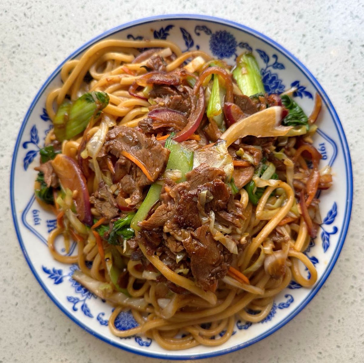 stir fried beef with tomato dry noodle rice 牛肉西红柿拌面饭